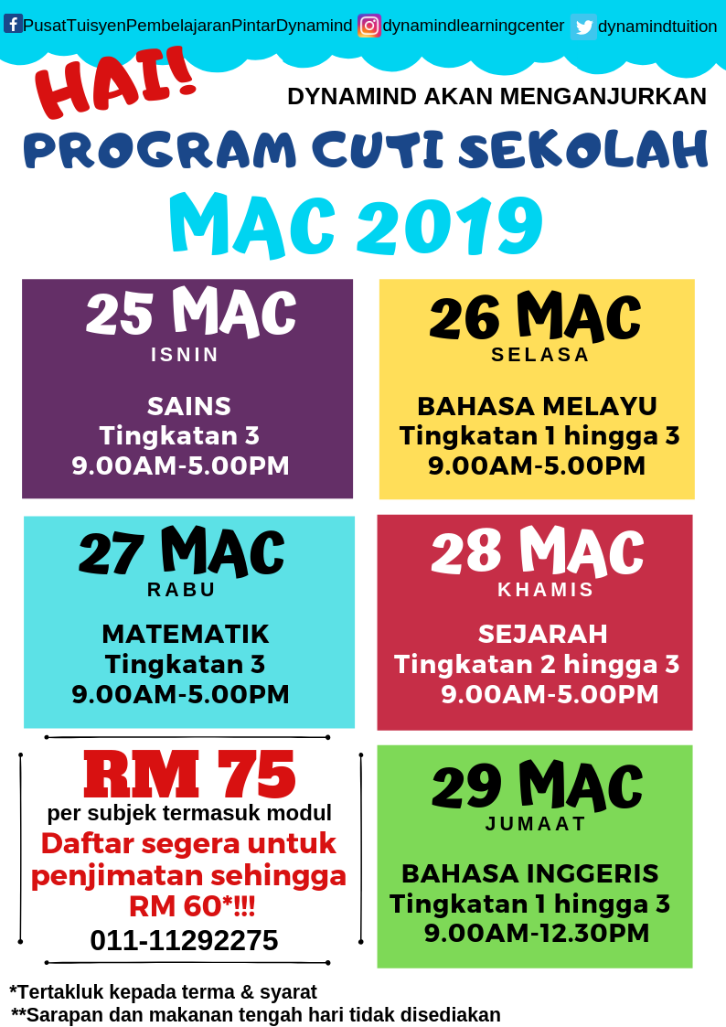 Pusat Tuisyen Pembelajaran Pintar Dynamind Seksyen 9 Program Cuti Sekolah Mac 2019