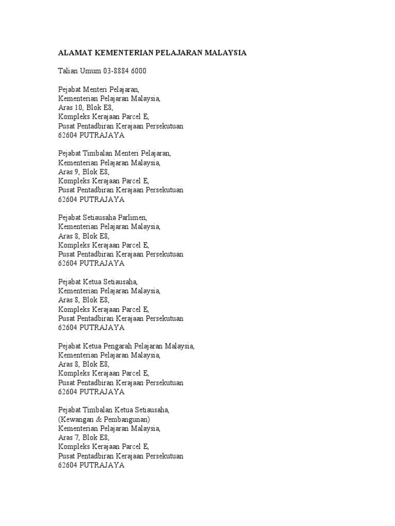 Ini Alamat Kementerian Pelajaran Malaysia Sila Simpan