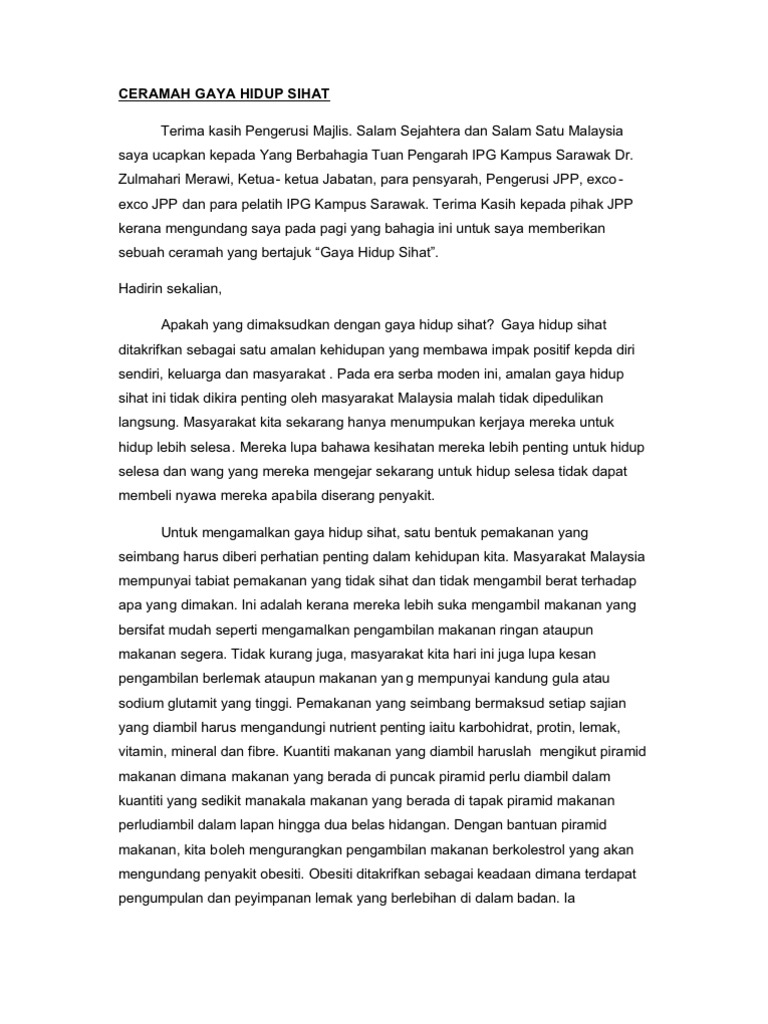 Langkah Langkah Mengamalkan Gaya Hidup Sihat Karangan Stpm