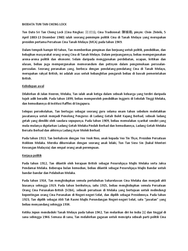 Tokoh Negara Malaysia Tun Tan Cheng Lock