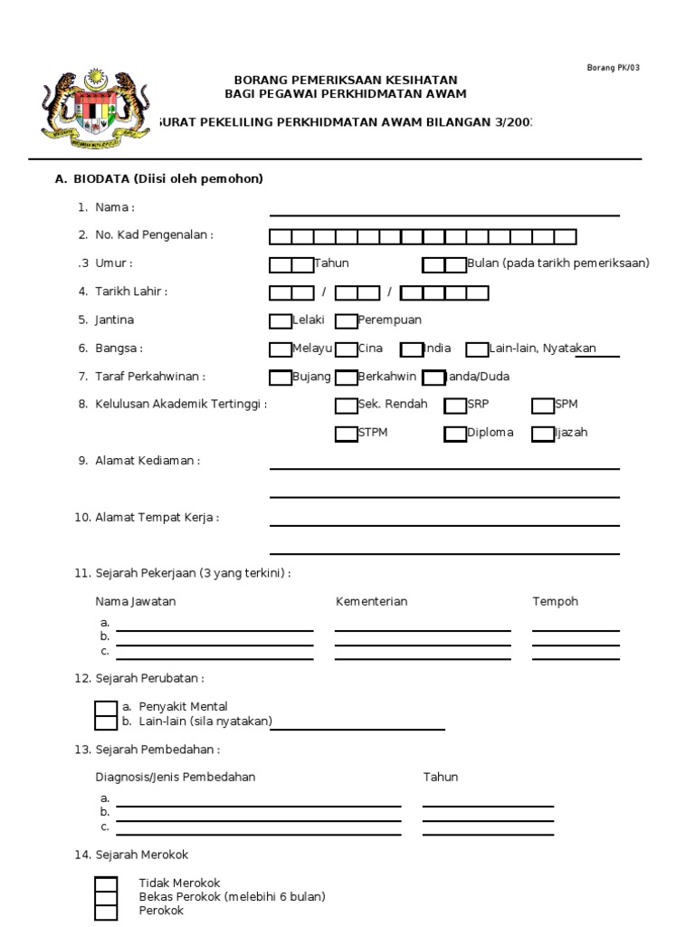 Borang Pemeriksaan Kesihatan Perkhidmatan Awam