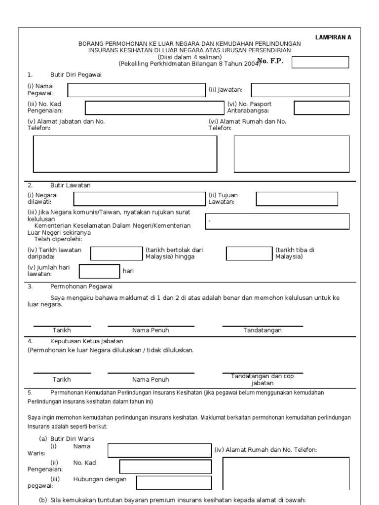 Borang Permohonan Perjalanan Ke Luar Negara Lampiran 1