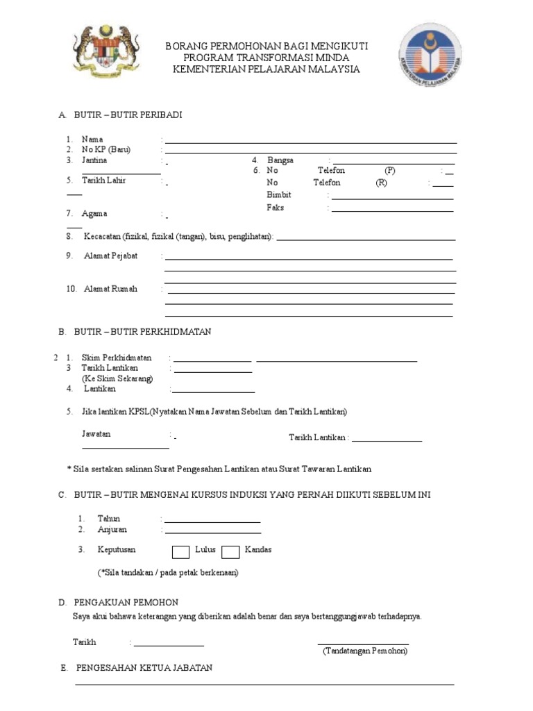 Borang Permohonan Program Transformasi Minda 1