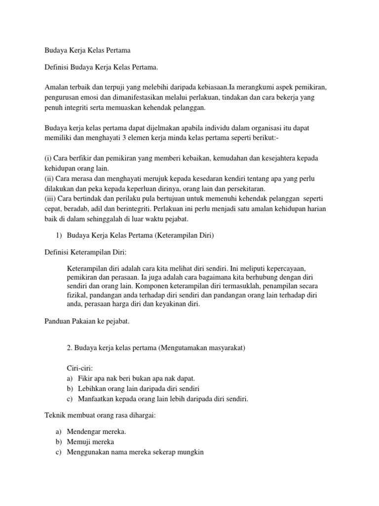 Budaya Kerja Kelas Pertama