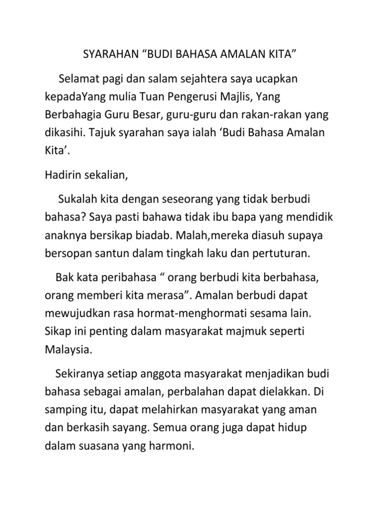 Syarahan Budi Bahasa Amalan Kita Docx
