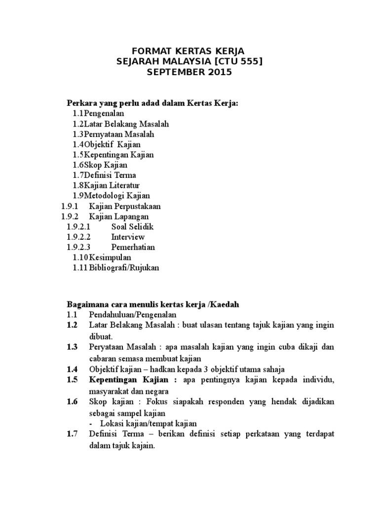 Format Kertas Kerja Ctu 555 Sejarah Malaysia