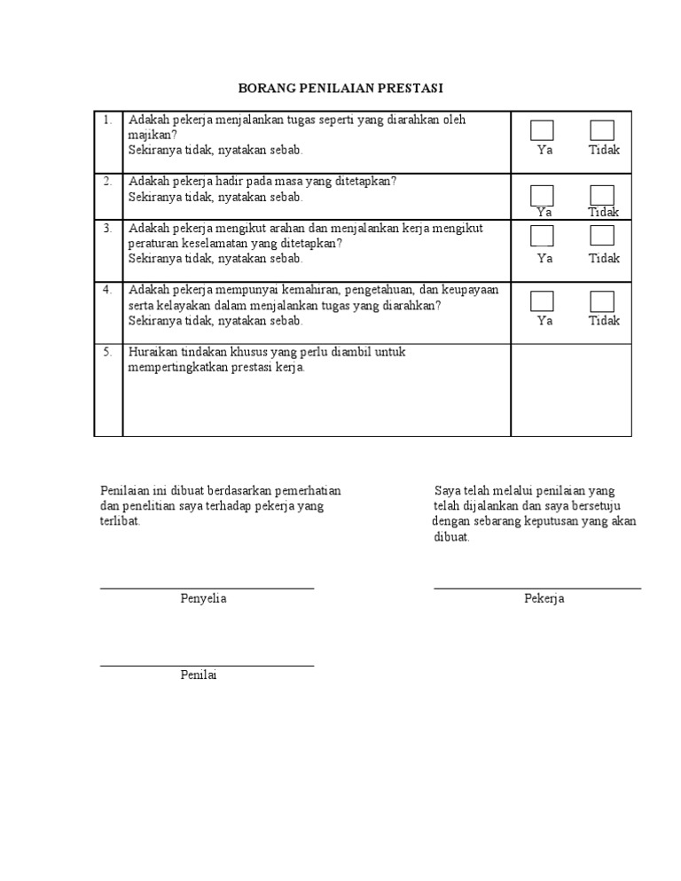 Contoh Borang Penilaian Prestasi Kerja Swasta