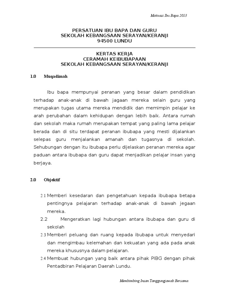Doc Kertas Kerja Ceramah Motivasi Keibubapaan Mai Isma Academia Edu