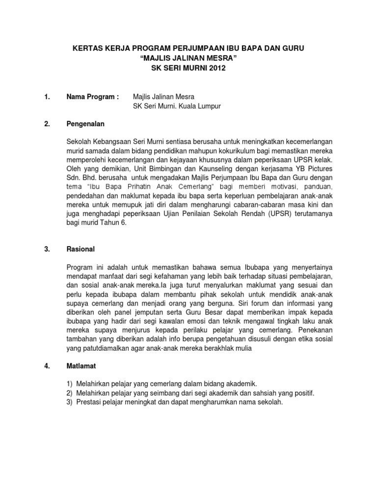 Kertas Kerja Program An Ibu Bapa Dan Guru