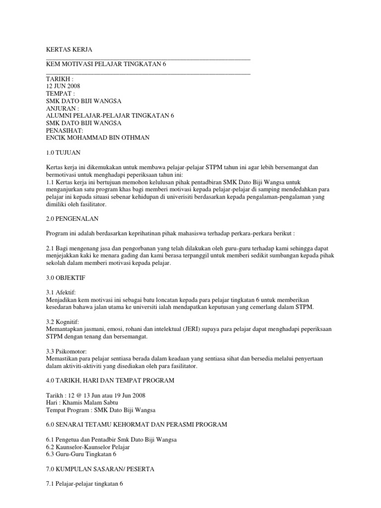 Doc Kertas Kerja Program Suntikan Motivasi Tingkatan 2 Hingga 5 Sekolah Menengah Kebangsaan Panji 2006 Aizuddin Dien Academia Edu