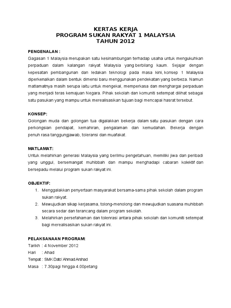 Contoh Kertas Kerja Program Sambutan Kemerdekaan Pendidik2u