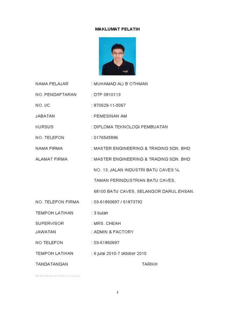 Contoh Laporan Latihan Industri