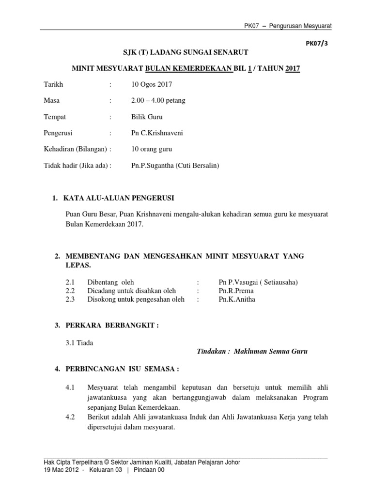 Pk 07 3 Contoh Format Minit Mesyuarat