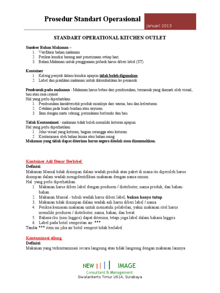 Contoh Standar Operasional Prosedur Kitchen Hotel Bagikan Contoh