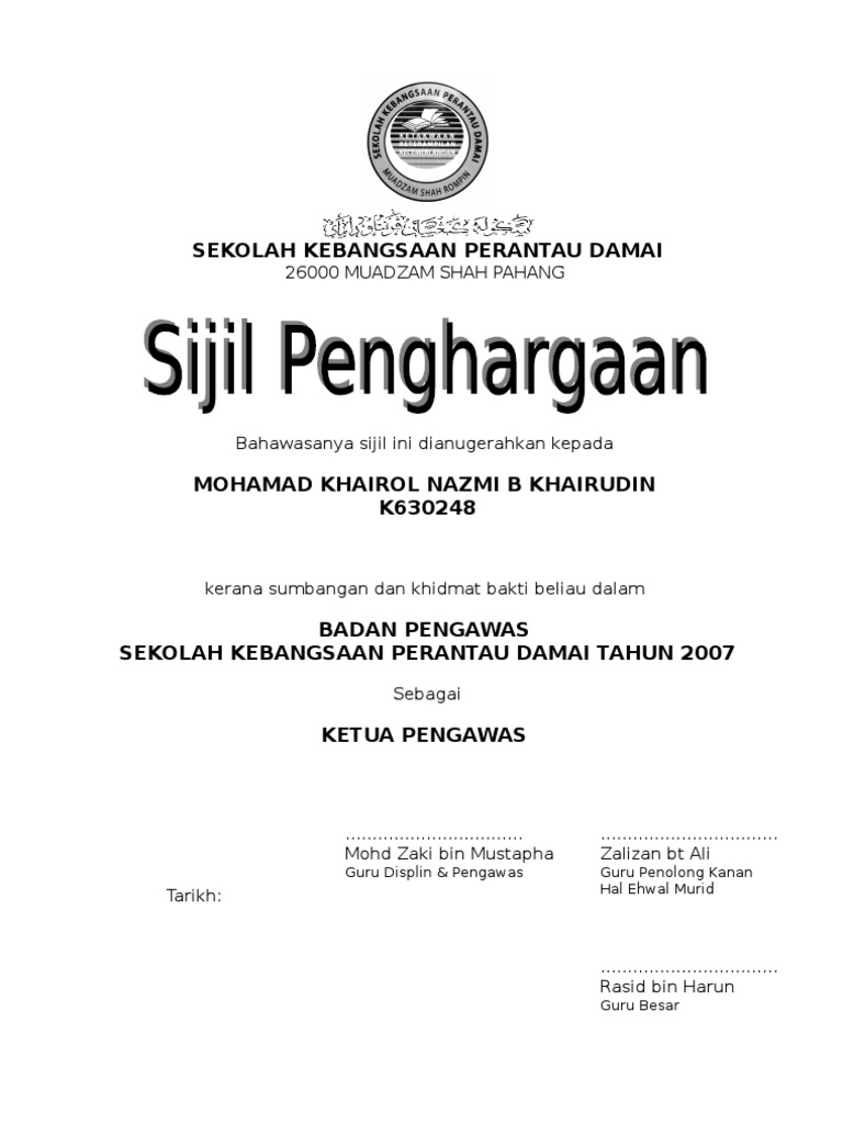 Contoh Sijil Penghargaan Dan Boleh Diedit