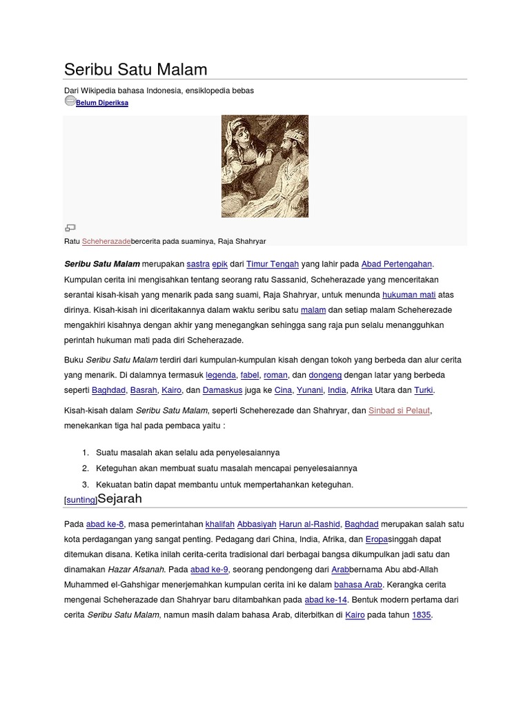 Hikayat Seribu Satu Malam Wikipedia Bahasa Melayu Ensiklopedia Bebas