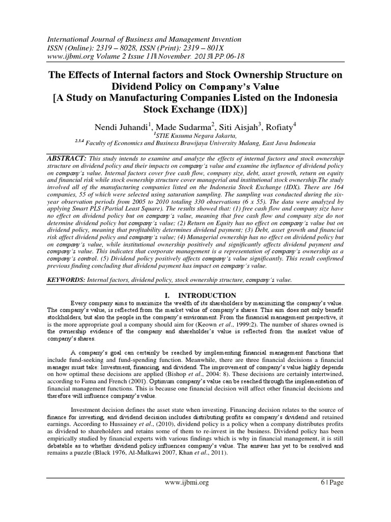 International Journal Of Business And Management Invention Ijbmi Dividend Investing