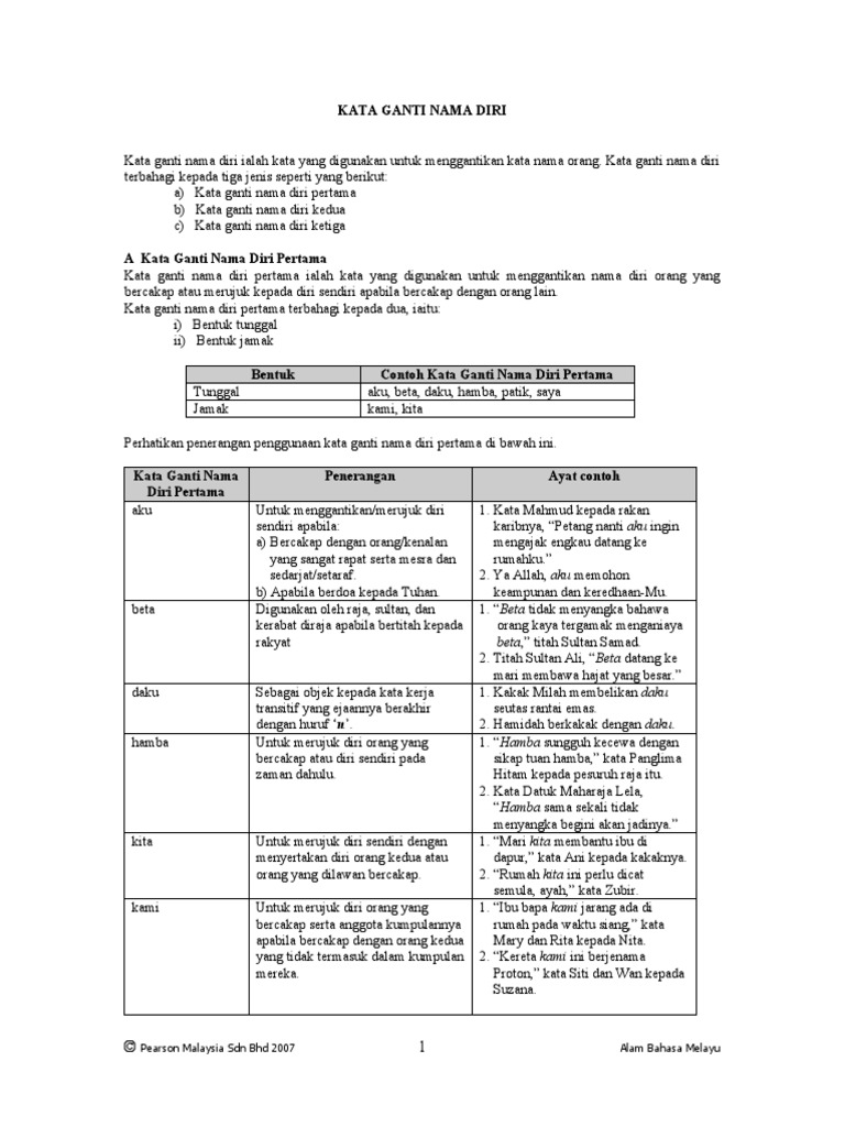 Nota Bahasa Malaysia Kata Ganti Nama Diri