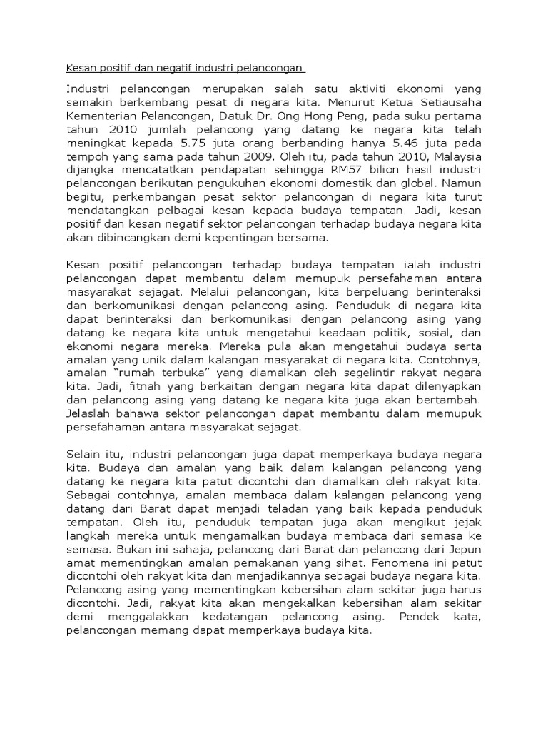 Kesan Positif Dan Kesan Negatif Industri Pelancongan Docx