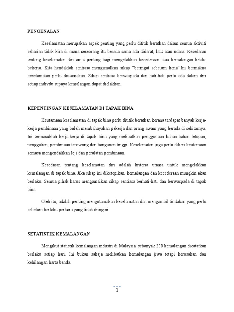 Mengurus Keselamatan Di Tempat Kerja Mengurus Keselamatan Diri