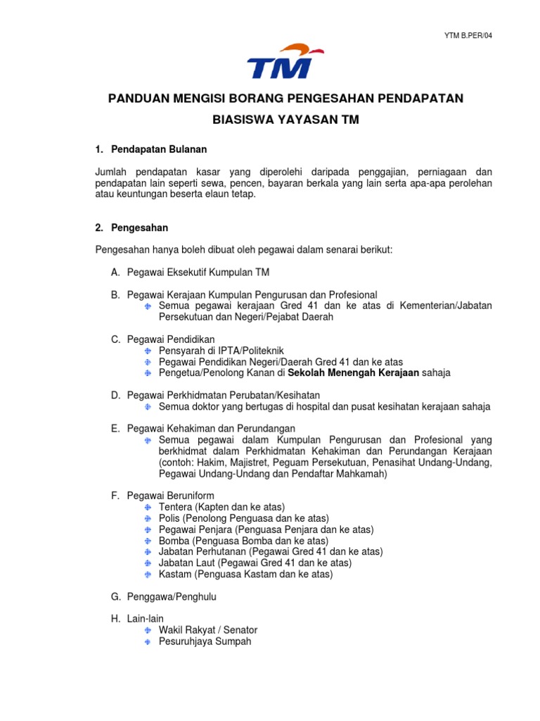 Panduan Mengisi Borang Pengesahan Pendapatan Biasiswa Yayasan Tm