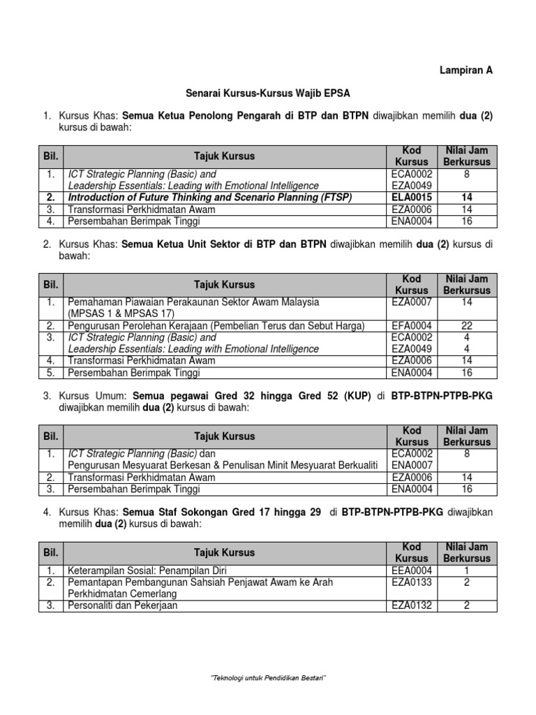 Senarai Kursus Terkini Bagi Kursus Epsa