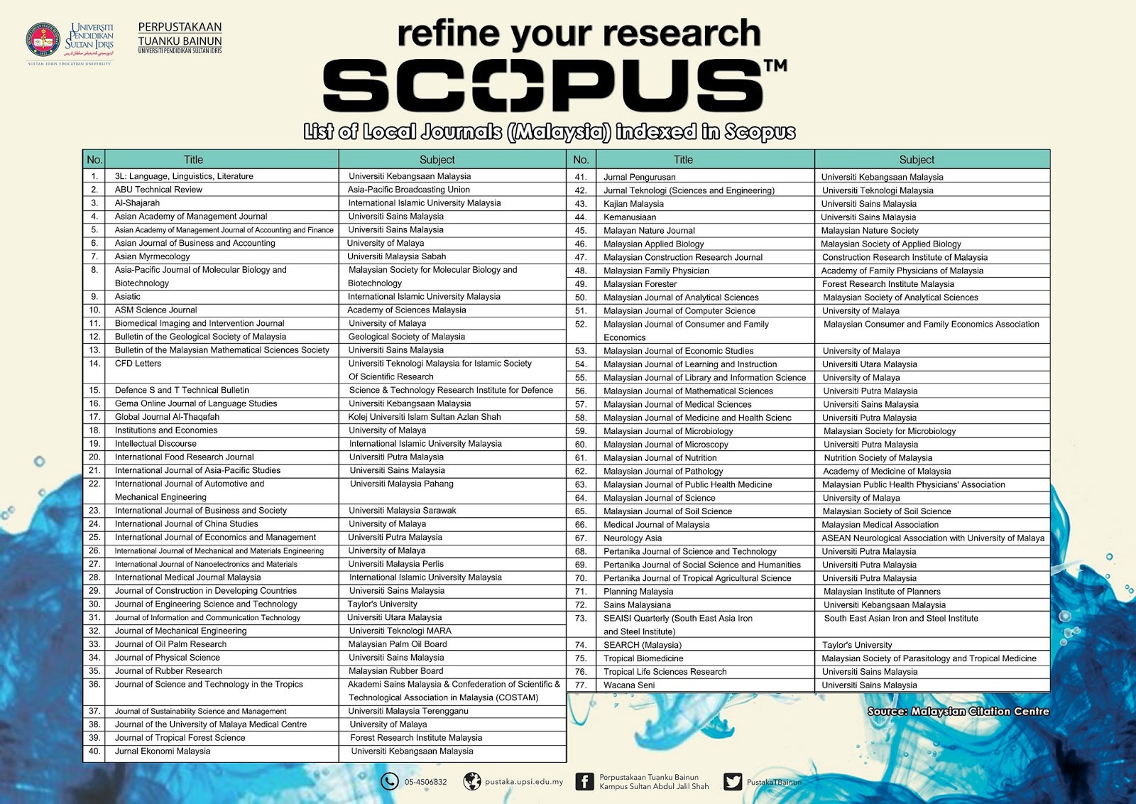 Berita Pustaka Updates List Of Malaysian Journal Indexed In Scopus Isi Upsi Perpustakaan Tuanku Bainun
