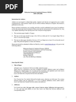 The Malaysian Journal Of Analytical Sciences Evisa S Journals Database