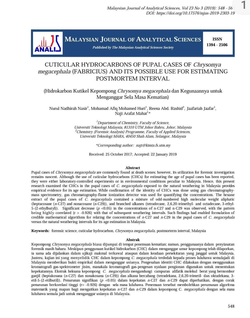 Forensic Science At Utm New Article Nasir Et Al 2019