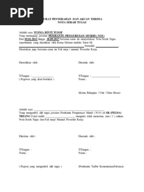 Contoh Surat Penting Contoh Nota Serah Tugas Perlu Diisi Untuk Guru Yang Berpindah Keluar