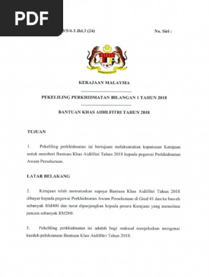 Pekeliling Perkhidmatan Bilangan 1 Tahun 2018 Bantuan Bantuan Khas Aidilfitri 2 Pdfآ Bantuan Pdf Document