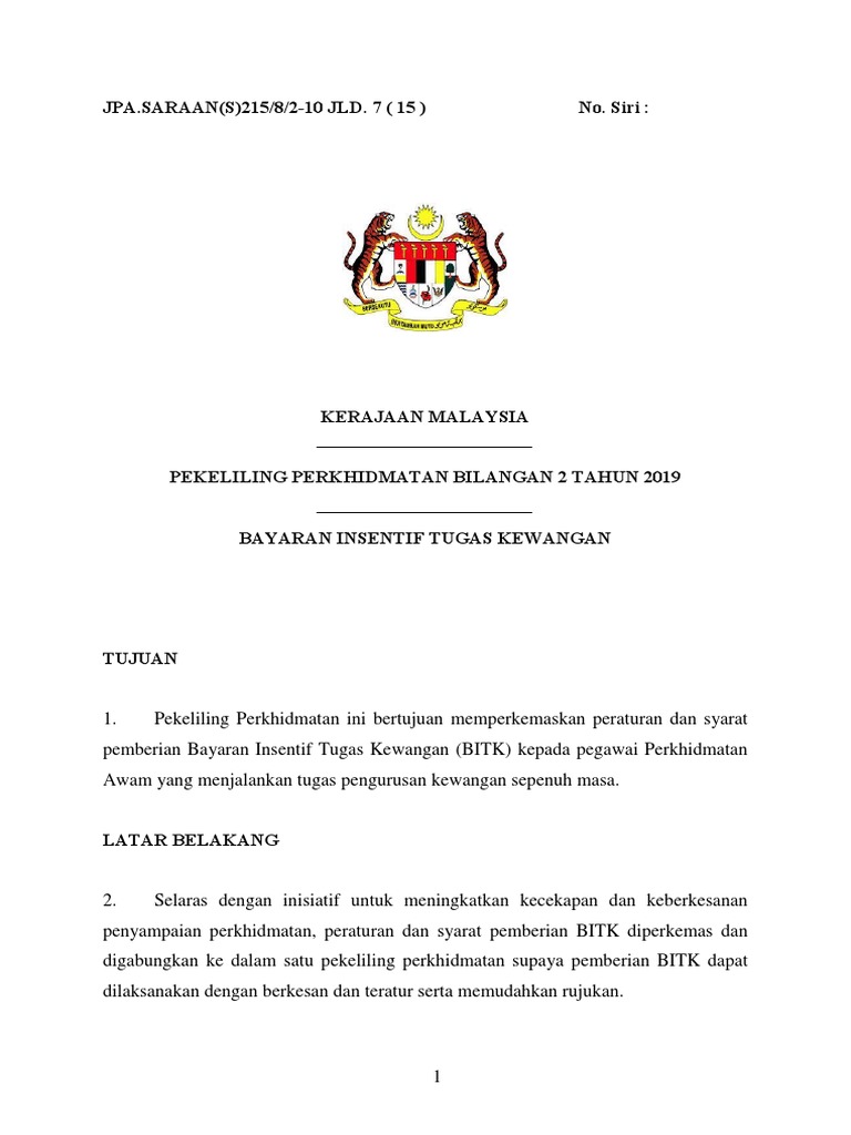 Pp Bil 2 Tahun 2019 Bayaran Insentif Tugas Kewangan