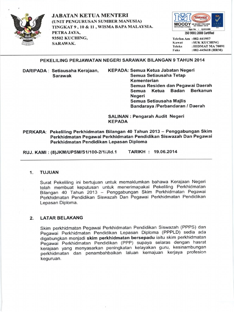 Pp Bil 092014 Pekeliling Perjawatan Negeri Sarawak Bilangan 9 Tahun 2014 Pekeliling Perkhidmatan Bilangan 40 Tahun 2013 Penggabungan Skim Perkhidmatan Pegawai Perkhidmatan Pendidikan Siswazah Dan Peg