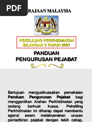 Kerajaan Malaysia Panduan Pengurusan Pejabat Kerajaan Malaysia Pekeliling Perkhidmatan Bilangan 5 Pdf Document