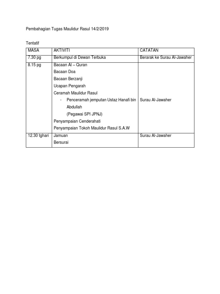 Pembahagian Tugas Maulidur Rasul 14