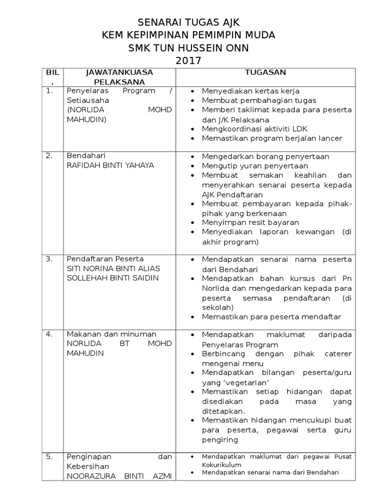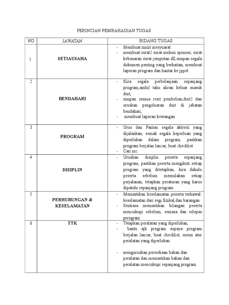 Pembahagian Tugas Panitia By Azimah Dollah Issuu