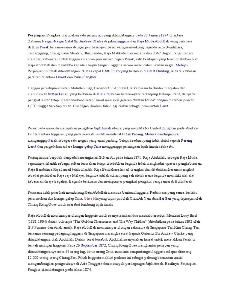 Perjanjian Pangkor 20 Januari 1874 Sembangkuala