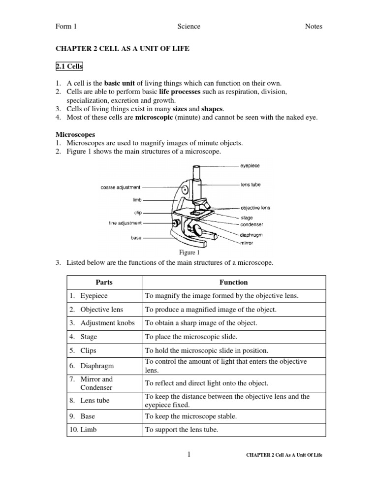 Pmr Science Form 1 Chapter 2 Cell As A Unit Of Life