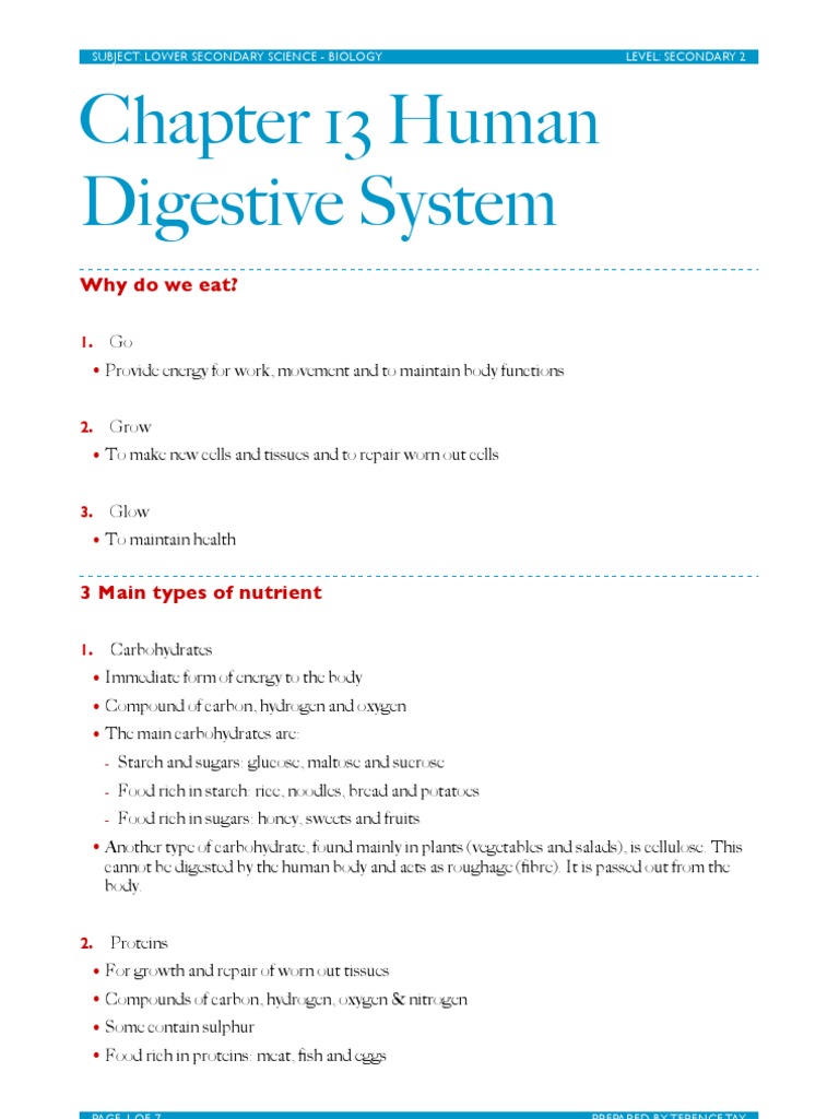 Chapter 13 Human Digestive System Digestion Small Intestine