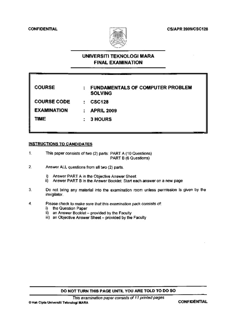 Https Saiful Uitm Edu My Files Csc128 Final Finaljan2018 Pdf